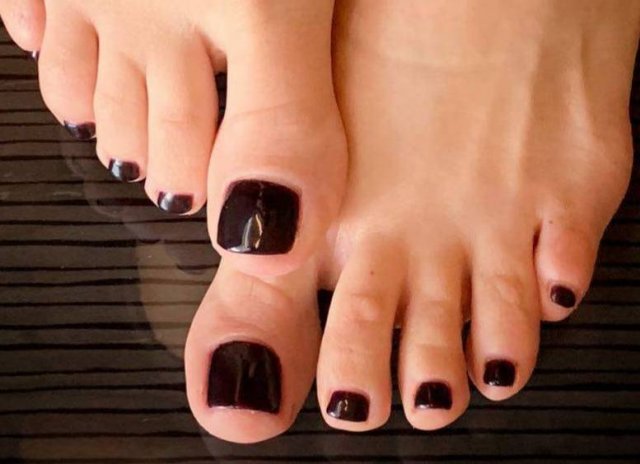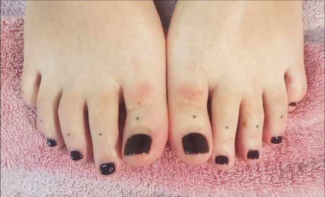 After a thorough foot bath with a peeling, old layers of nail polish, Gel or Shellac are removed. Special attention is paid, not to damage the nail itelf. Cuticles are trimmed and excess skin is removed. The nails are shortened and given a clean shape.